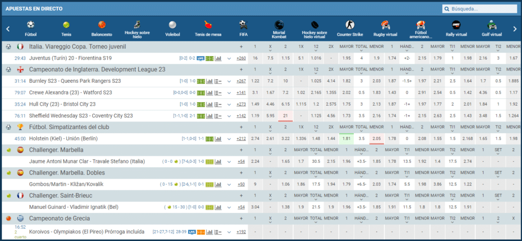 Sí, 1xBet tiene una sección exclusiva para las apuestas deportivas en directo.