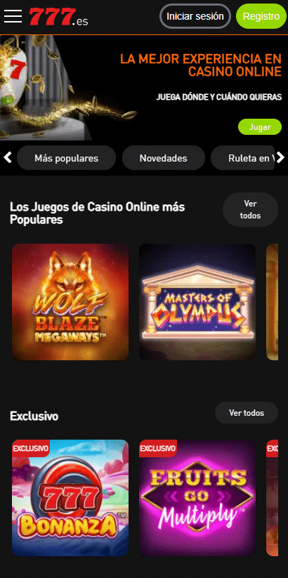 Lo principal de cualquier sitio web para móviles en el caso de un casino en línea es que sea responsivo, que nos permita hacer depósitos y retiradas y que tenga exactamente las mismas funciones que la plataforma web. Estas tres promesas Casino777 las cumple en un 100% si estamos accediendo desde Android, y en un 95% si accedemos desde IOS. La razón de esta diferencia es la guerra entre Apple y Flash y el hecho de que muchas máquinas todavía funcionan usando esta tecnología.